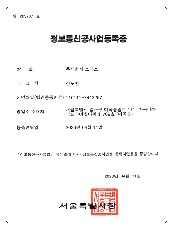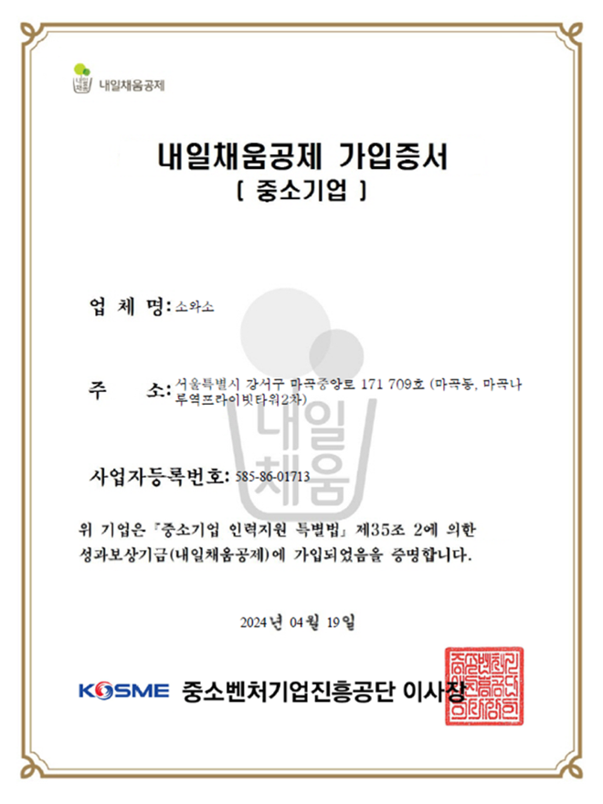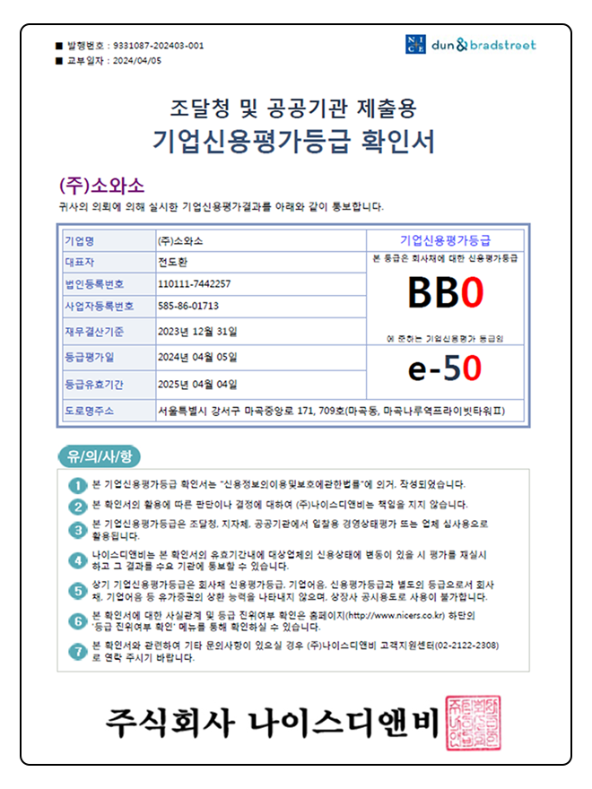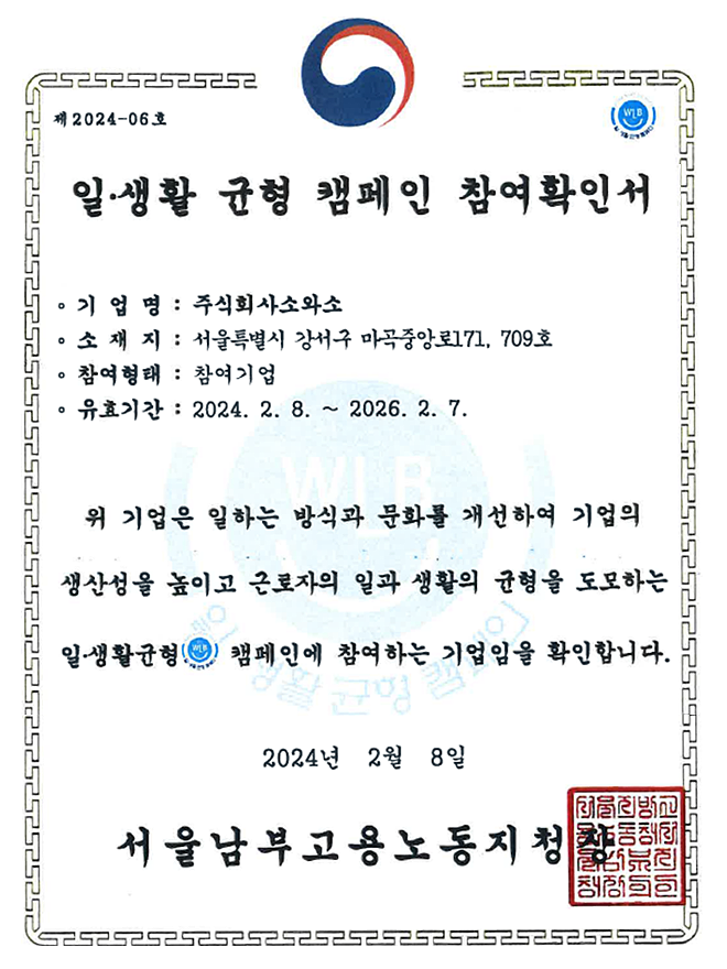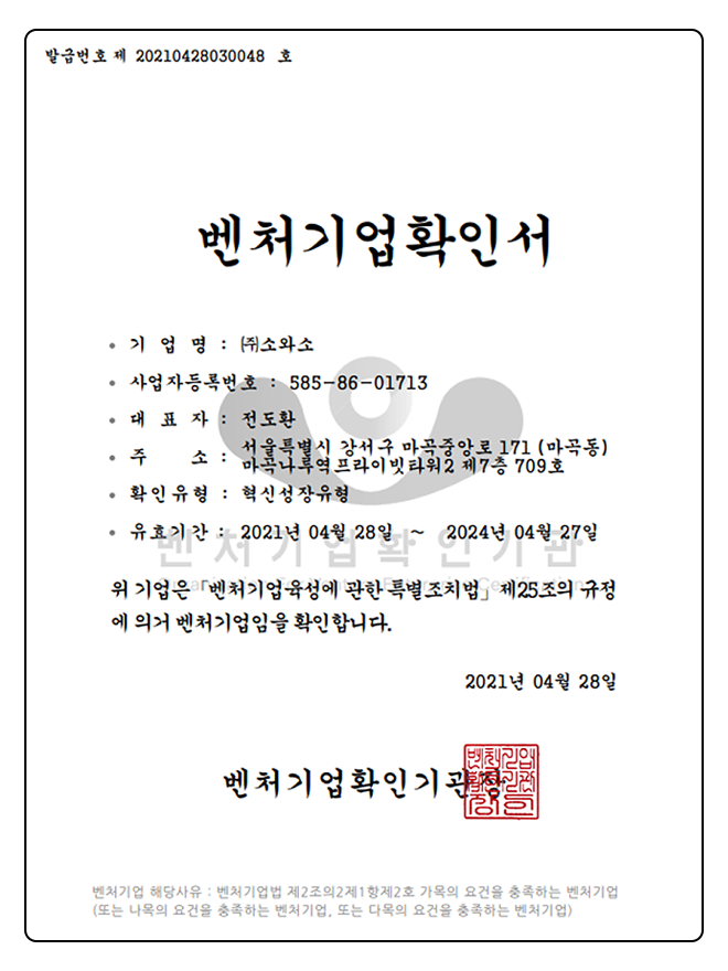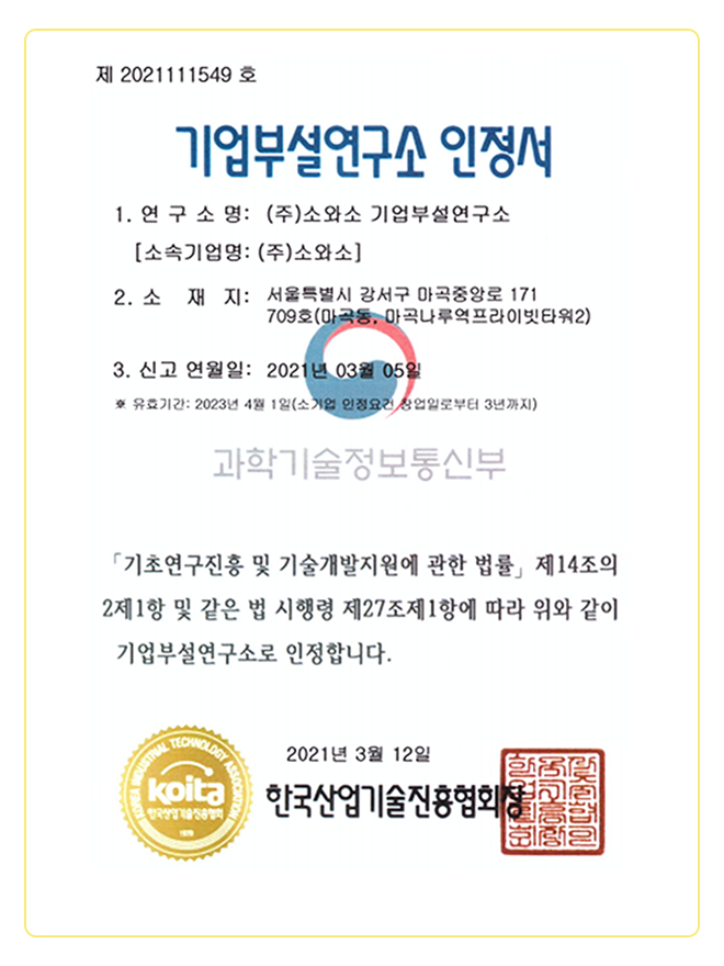 소와소는 파트너와 상생하며, 혁신 기업으로 지속 성장하기 위해 끊임없이 연구하며 도전합니다.
